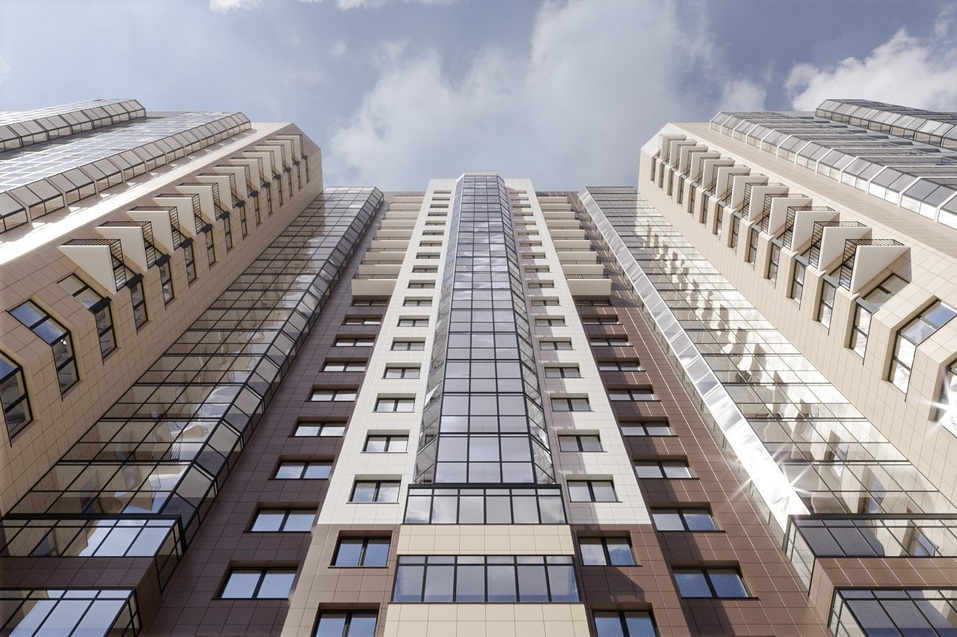 Главное в проекте — сам 25-этажный дом, который выглядит настоящим гигантом на фоне местных малоэтажных соседей. Это не панельный «клон», а здание в современном стиле по проекту опытных архитекторов. Для любителей красивых панорам застройщик предлагает видовые квартиры на любую сторону, начиная со средних этажей. Высотных зданий в округе нет, поэтому ничто не помешает наслаждаться красочными закатами и огнями ночного города.
