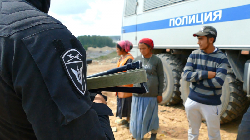 Десятки приезжих из стран ближнего зарубежья сортируют мусор на свалке в Полетаево. ОМОН и полиция среди них обнаружили тех, кто не имеет права там работать.