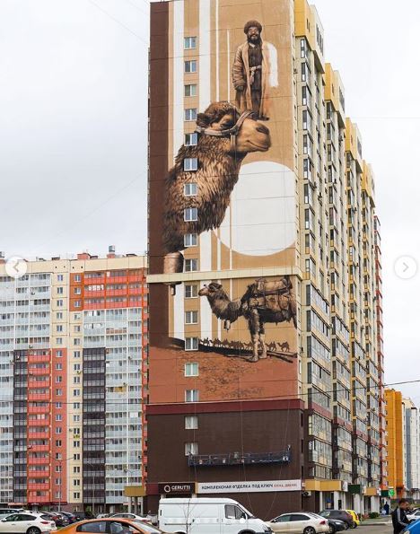 11 граффити появились на торцах домов на северо-западе Челябинска. Художники в рисунках попытались выразить культурный код челябинцев: изобразили Курчатова, верблюдов и горы.