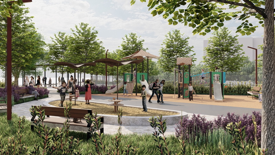 В посёлке Локомотивный появится сквер в границах улиц Карабанова, Саблина, Деповская, Бригадная. Проект предусматривает две детские площадки, перголы с качелями и лавочками, безопасную улично — дорожную сеть.