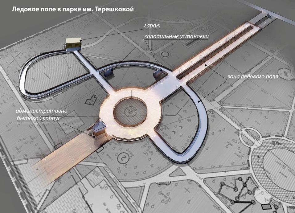По дорожкам в парке Терешковой зимой можно будет кататься на коньках