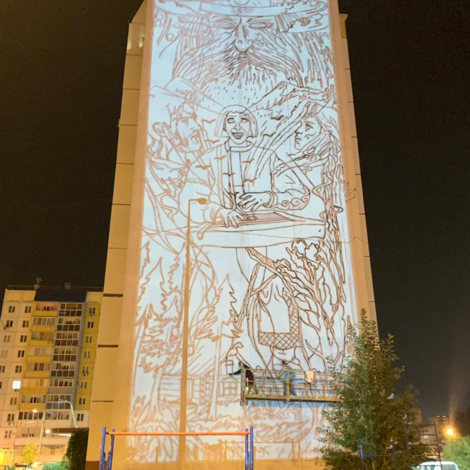 Художник из Казани уже прибыл, к его приезду мы загрунтовали фасад, покрасили первый слой, смонтировали строительные люльки. Сейчас работа выполнена на 10%, уже сделали наметку рисунка. Что именно будет изображено, пока держим в секрете, но намекнем, что это будет природная тематика, — поделился руководитель ассоциации художников «Graffiti Russia» Павел Щеклеин.