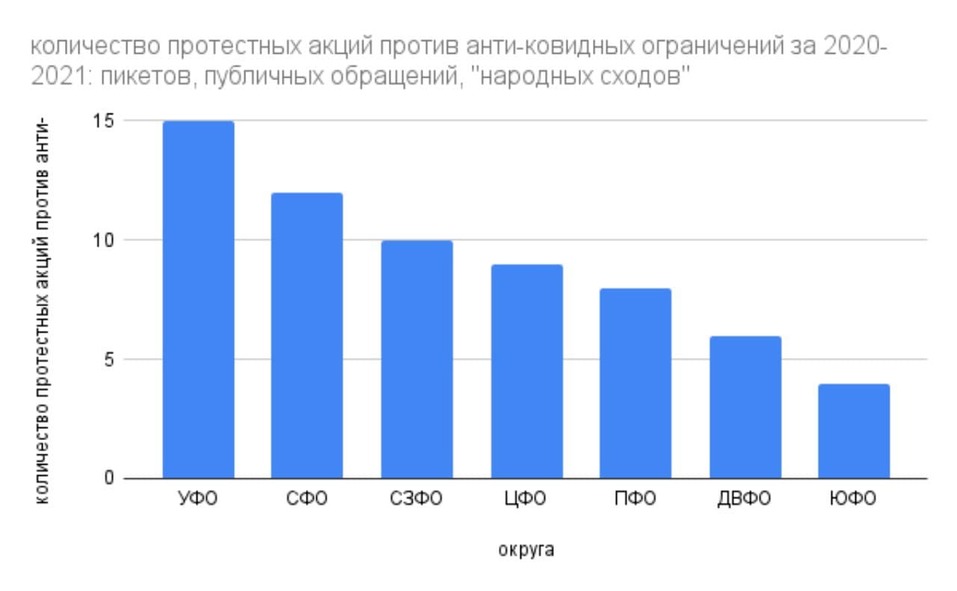 Уральский федеральный округ стал лидером по числу протестов против антиковидных ограничений в 2020–2021 гг. По мнению экспертов, социальное недовольство может легко перекинуться в плоскость политики.