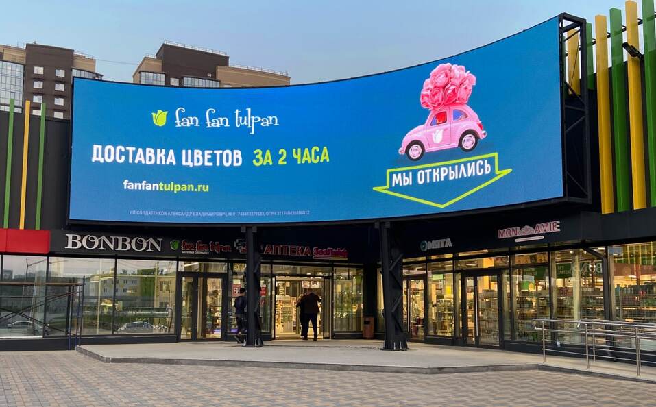 Мы демонстрируем рекламу в Челябинске с помощью собственных медиаповерхностей на ТРК «Родник», ТРК «Космос», автоцентре «Гольфстрим», Cadillac и других. Один из крупнейших светодиодных экранов в Челябинске мы разместили на ТРК «Родник», когда-то он был самым большим в УрФО. На ТРК «Космос» мы смонтировали первый радиальный экран. Есть у нас проект вогнутого вовнутрь экрана, расположенного в ЖК «Ньютон». Недавно мы установили первый в Челябинске вертикальный экран на ТРК «Урал», напротив магазина «Золотое яблоко». Такой формат напоминает увеличенный экран смартфона и позволяет демонстрировать видеоролики в формате сторис.