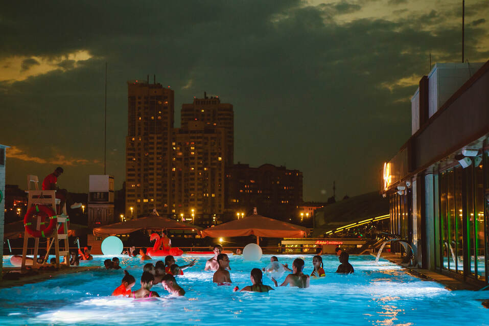 Термальный курорт «Лето» разместился сразу на трех этажах КРК «Мегаполис». На крыше главная изюминка проекта — большой бассейн под открытым небом с панорамным обзором на новую набережную. Здесь же расположились детский бассейн, кафе, пляж, 4 бани различной тематики, «иглу» (домики для дружеских посиделок и праздников) и pool bar, в котором можно заказывать напитки, не выходя из бассейна.