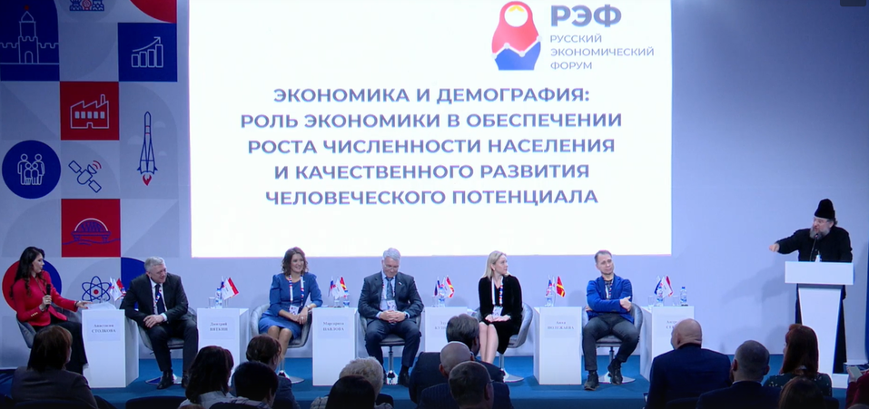 Однако заместитель главы Всемирного русского народного собора, председатель совета директоров медиахолдинга «Царьград» и один из идейных вдохновителей всего РЭФ Константин Малофеев утверждает: роль экономических мер в демографии не первична, приводя в пример ОАЭ, где за одно последнее поколение на экономическом взлёте рождаемость упала вдвое (ранее, правда, коэффициент составлял около 5 детей на женщину). Случилось это, по его мнению, из-за того, что на всех предприятиях указом эмира 50% сотрудников теперь должны быть женщинами.