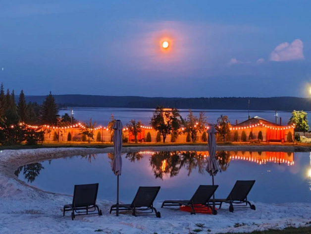 Загородная резиденция расположена в живописной местности, рядом с лесом и озером. С территории открывается вид на Уральские горы.